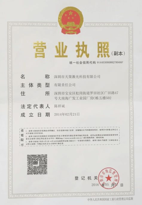 深圳市天策激光科技有限公司(天策激光)成立于2012年,是一家專業從事激光設備實用技術科研與開發的國家高新技術企業,公司集研發、制造、銷售、服務于一體。經過多年努力現已成為全國一流的激光設備制造商。天策激光始終堅持精心設計、精心制作、熱情服務、爭創一流、以科技促發展、靠質量求生存的質量方針,始終奉行人誠企信、主客雙贏的經營理念, 公司座落于全國信息產業大城市—深圳,依托以廣州為中心的珠...